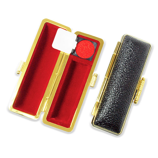 ![]() ご印鑑ケース [丸寸胴用] ファンシーレザーケース ブラック 印鑑長さ約60mm 直径13.5mm〜15mm用 簡易朱肉付き [IB-FA1506] |