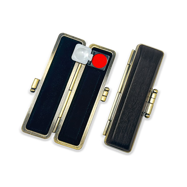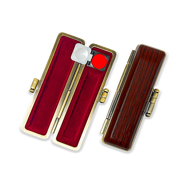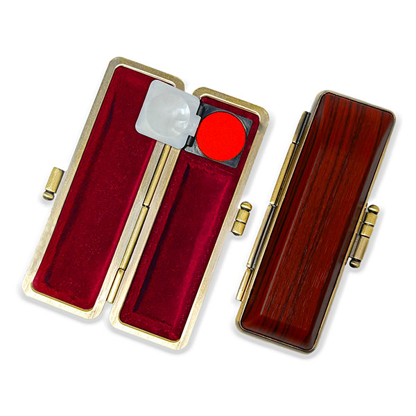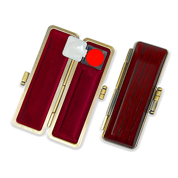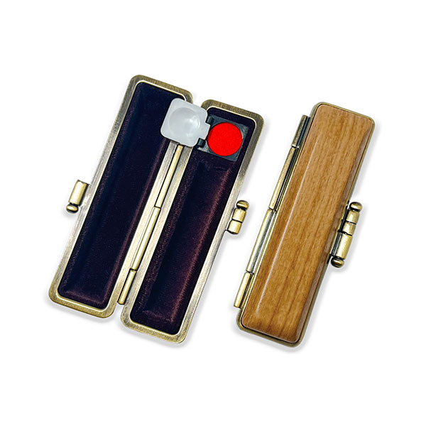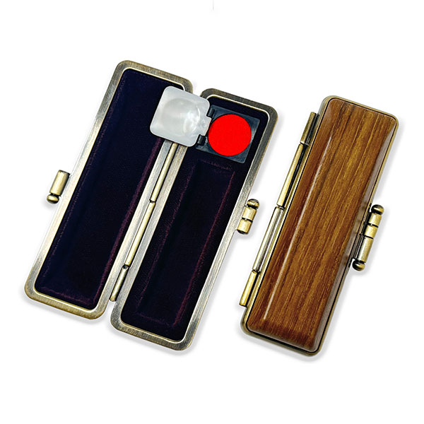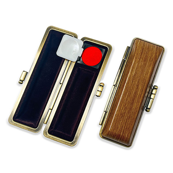 ![]() ご印鑑ケース [丸寸胴用] 木目調ケース アグニ ブロンズ枠 印鑑長さ約60mm 印面直径13.5mm〜15mm用 簡易朱肉付き |
