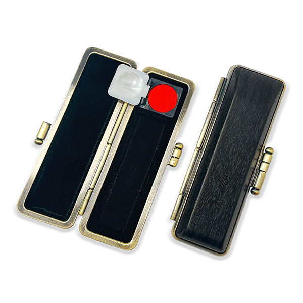 ![]() ご印鑑ケース [丸寸胴用] 木目調ケース 彩樺(さいか) 黒 ブロンズ枠 印鑑長さ約60mm 印面直径13.5mm〜15mm用 簡易朱肉付き |