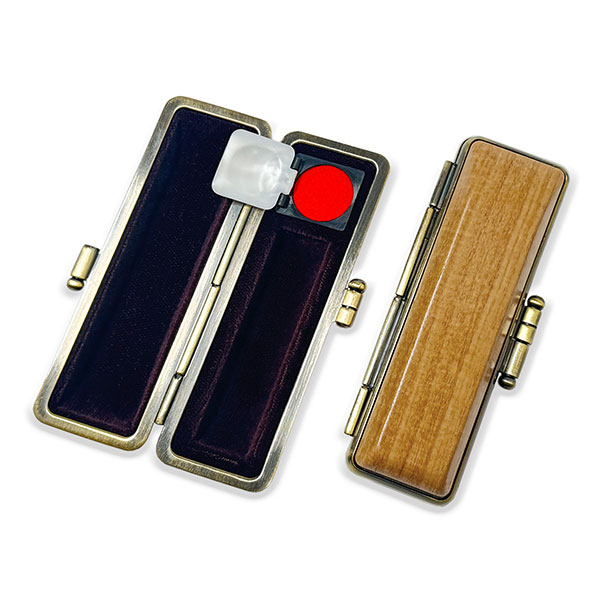 ![]() ご印鑑ケース [丸寸胴用] 木目調ケース 楓(かえで) ブロンズ枠 印鑑長さ約60mm 印面直径13.5mm〜15mm用 簡易朱肉付き |