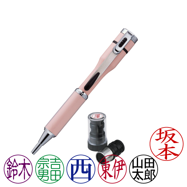 シャチハタ・ネームペン・キャップレスS・ペールピンク・ボールペン+ネームペン用ネームX-GPS(別注品Aタイプ)・お名入れ[レーザー彫刻]・インク色:6色より選択[Shachihata・Xstamper・CAPLESS-S・TKS-CUS1+X-GPS]/商品コード:48401:48900