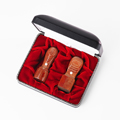 主に寒冷地が産地となっている天然の樺の木と特殊な樹脂を高圧加熱処理して作り出されたシックで控え目なダーク調の木目が特徴の新しいタイプの印材です。