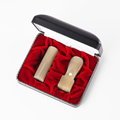 主に寒冷地が産地となっている天然の樺の木と特殊な樹脂を高圧加熱処理して作り出されたシックで控え目なダーク調の木目が特徴の新しいタイプの印材です。