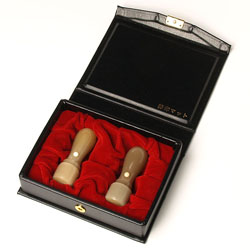 ケースのふたの部分が捺印マットになっている印鑑とゴム印を収納できるセットケースです