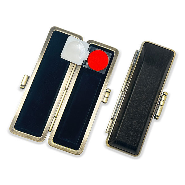 ![]() ご印鑑ケース [丸寸胴用] 木目調ケース アグニ ブロンズ枠 印鑑長さ約60mm 印面直径16.5mm〜18mm用 簡易朱肉付き |
