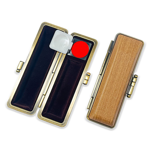 ![]() ご印鑑ケース [丸寸胴用] 木目調ケース 楓(かえで) ブロンズ枠 印鑑長さ約60mm 印面直径13.5mm〜15mm用 簡易朱肉付き |