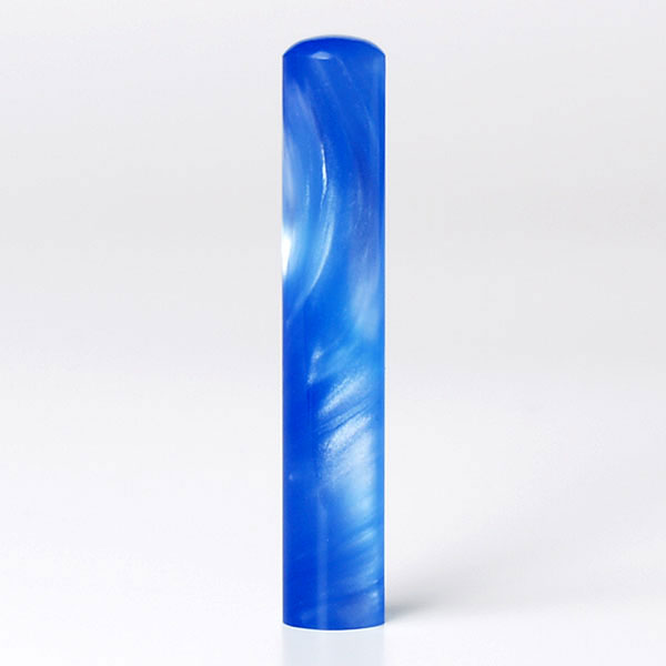 個人印鑑[手彫り仕上げ]・パールグラス・ブルー(アタリ無し)・印面直径約10.5mm×長さ約60mm・ケース別売り