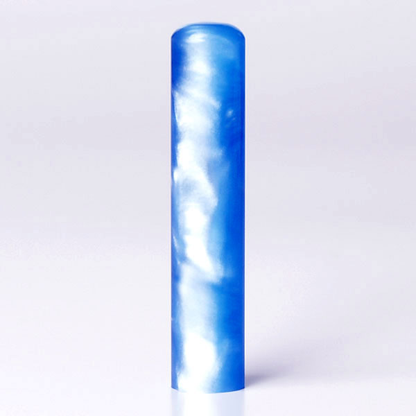 個人印鑑[手彫り仕上げ]・パールグラス・ブルー(アタリ無し)・印面直径約12mm×長さ約60mm・ケース別売り