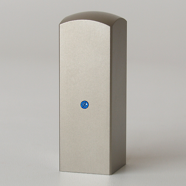 落款印(姓名印・氏名印)シルバーブラストチタン・角寸胴(スワロフスキーアタリ付)・サファイア・印面約21x21mm・長さ約60mm・ケース別売り