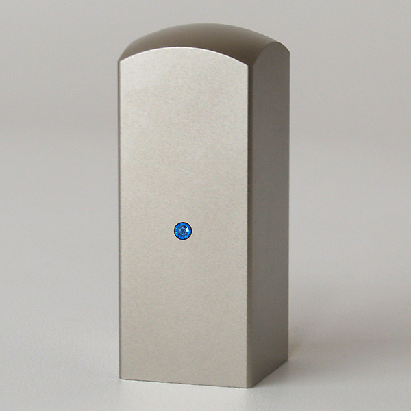 落款印(姓名印・氏名印)シルバーブラストチタン・角寸胴(スワロフスキーアタリ付)・サファイア・印面約24x24mm・長さ約60mm・ケース別売り
