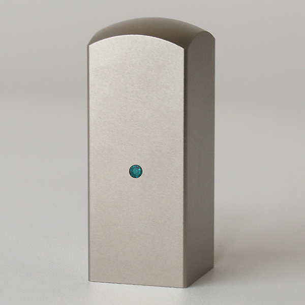 落款印(姓名印・氏名印)シルバーブラストチタン・角寸胴(スワロフスキーアタリ付)・エメラルド・印面約24x24mm・長さ約60mm・ケース別売り