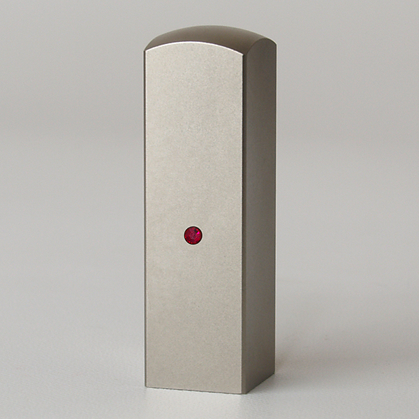 落款印(姓名印・氏名印)シルバーブラストチタン・角寸胴(スワロフスキーアタリ付)・ルビー・印面約18x18mm・長さ約60mm・ケース別売り