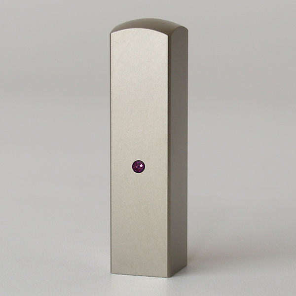落款印(姓名印・氏名印)シルバーブラストチタン・角寸胴(スワロフスキーアタリ付)・アメジスト・印面約15x15mm・長さ約60mm・ケース別売り