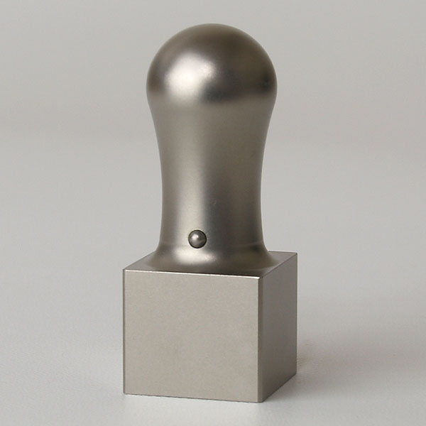 落款印(姓名印・氏名印)シルバーブラストチタン・角天丸(チタン球アタリ付)・印面約24x24mm・長さ約60mm・ケース別売り