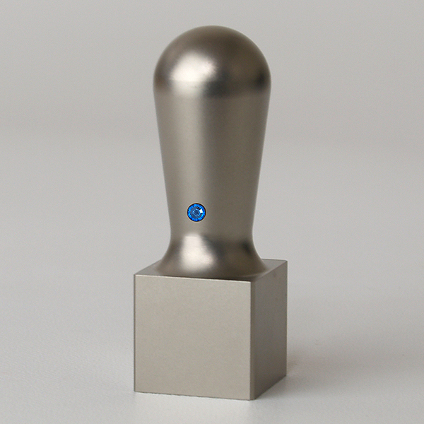 落款印(姓名印・氏名印)シルバーブラストチタン・角天丸(スワロフスキーアタリ付)・サファイア・印面約21x21mm・長さ約60mm・ケース別売り