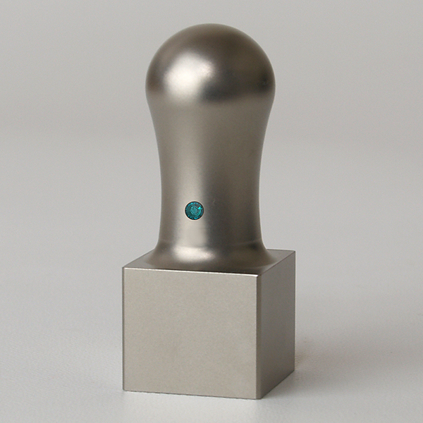 落款印(姓名印・氏名印)シルバーブラストチタン・角天丸(スワロフスキーアタリ付)・エメラルド・印面約24x24mm・長さ約60mm・ケース別売り