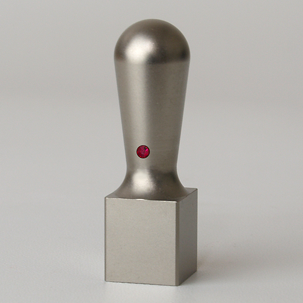 落款印(姓名印・氏名印)シルバーブラストチタン・角天丸(スワロフスキーアタリ付)・ルビー・印面約18x18mm・長さ約60mm・ケース別売り