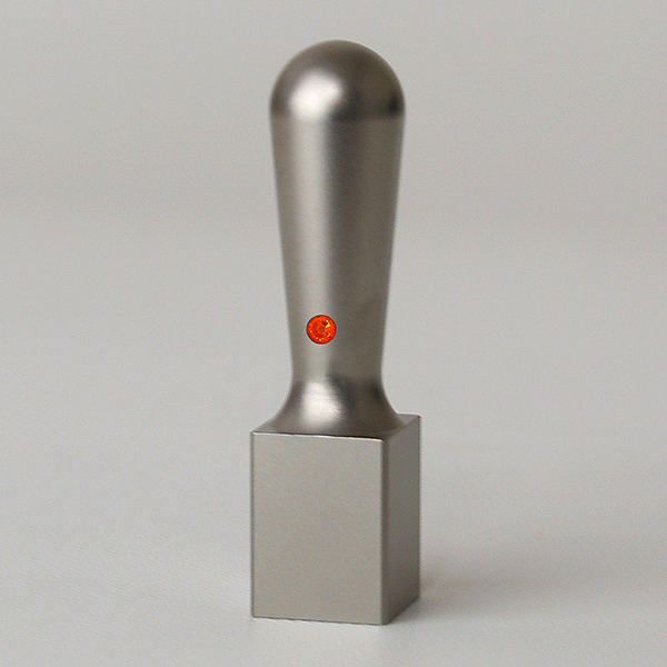 落款印(姓名印・氏名印)シルバーブラストチタン・角天丸(スワロフスキーアタリ付)・サン・印面約15x15mm・長さ約60mm・ケース別売り