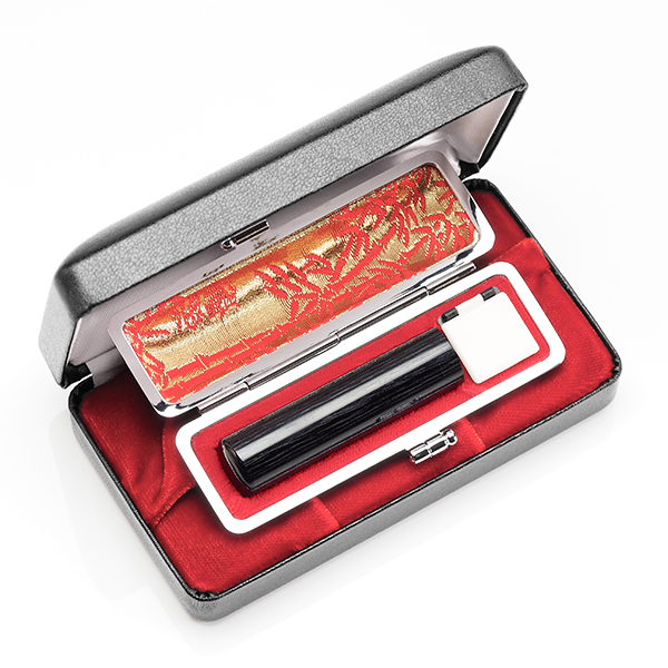 個人印鑑[手彫り仕上げ]・黒彩樺(アタリ有無選択可能)・10.5mm+エンボスオーストリッチケース+エクセレントセットケース