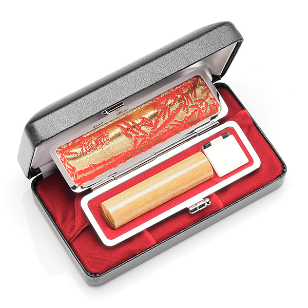 個人印鑑[手彫り仕上げ]・オノオレカンバ(アタリ無し)・12mm+エンボスオーストリッチケース+エクセレントセットケース