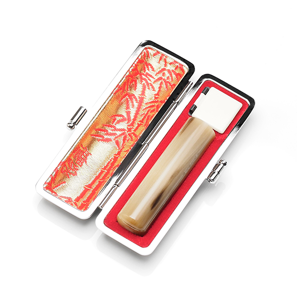 個人印鑑[手彫り仕上げ]・オランダ水牛色上(アタリ有無選択可能)・16.5mm+エンボスオーストリッチケース