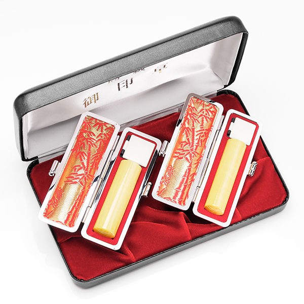 個人印鑑2本[手彫り仕上げ]・薩摩本柘(アタリ有無選択可能)・エンボスオーストリッチケースラグジュアリーセット+エクセレントセットケース
