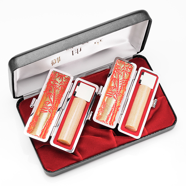 個人印鑑2本[手彫り仕上げ]・楓(アタリ有無選択可能)・もみ革ケースコンパクトセット+エクセレントセットケース