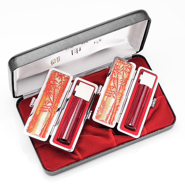 個人印鑑2本[手彫り仕上げ]・アグニ(アタリ有無選択可能)・牛革ケーススリムセット+エクセレントセットケース