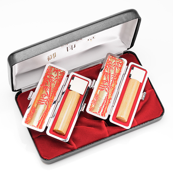 個人印鑑2本[手彫り仕上げ]・オノオレカンバ(アタリ無し)・もみ革ケースラージセット+エクセレントセットケース
