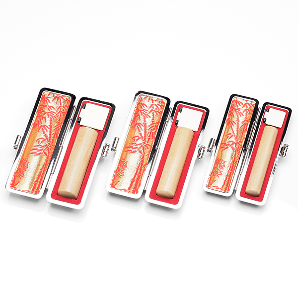 銀行印(16.5mm)×1 認印(13.5mm)×1 エンボスオーストリッチケース(3色から選択可能)・16.5〜18mm用×2 エンボスオーストリッチケース(3色から選択可能)・13.5〜15mm用×1
