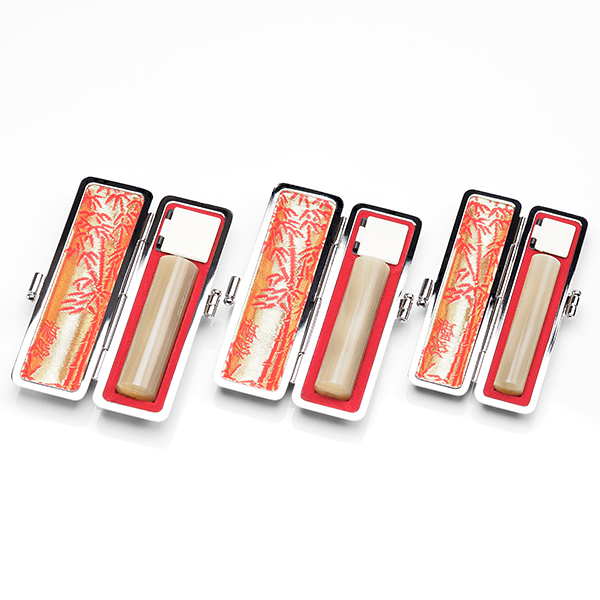 個人印鑑3本[手彫り仕上げ]・オランダ水牛純白(アタリ有無選択可能)・牛革ケーススタンダードセット