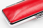 | 本牛革の中でも高品質で傷のない高級部位を使用。 | 内張りには縁起物の朱竹柄が刺繍されています。 |