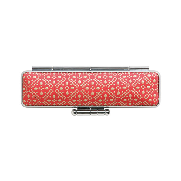 ご印鑑ケース[丸寸胴用]・上印伝・花菱赤・印鑑長さ約60mm・印面直径10.5mm〜12mm・簡易朱肉付き[CA-CL1233]