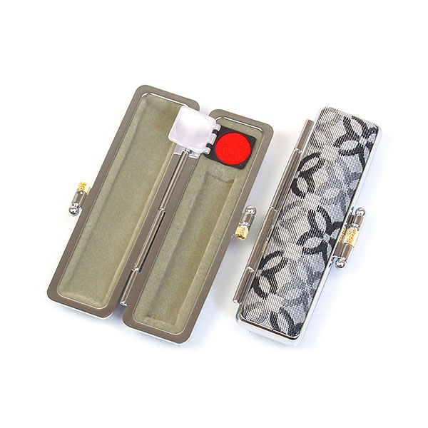 ご印鑑ケース[丸寸胴用]・モノグラム(クールグレイ)印鑑長さ約60mm・印面直径10.5mm〜12mm用・簡易朱肉付き