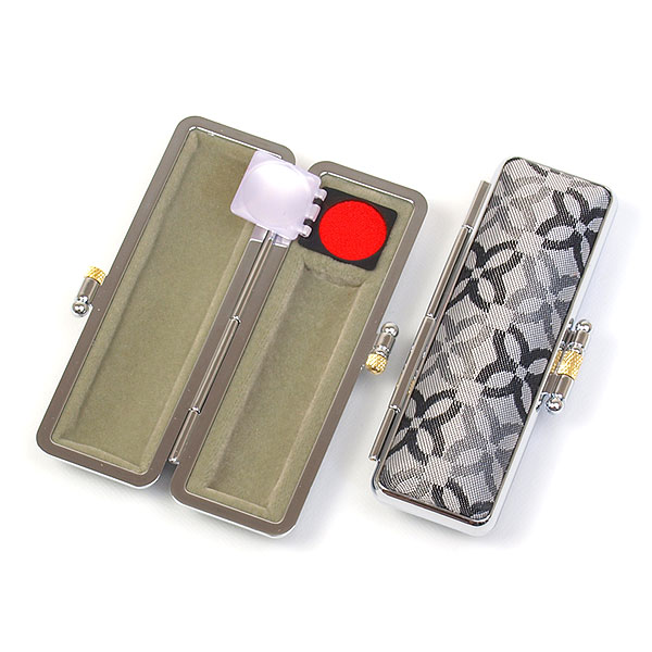 ご印鑑ケース[丸寸胴用]・モノグラム(クールグレイ)印鑑長さ約60mm・印面直径13.5mm〜15mm用・簡易朱肉付き
