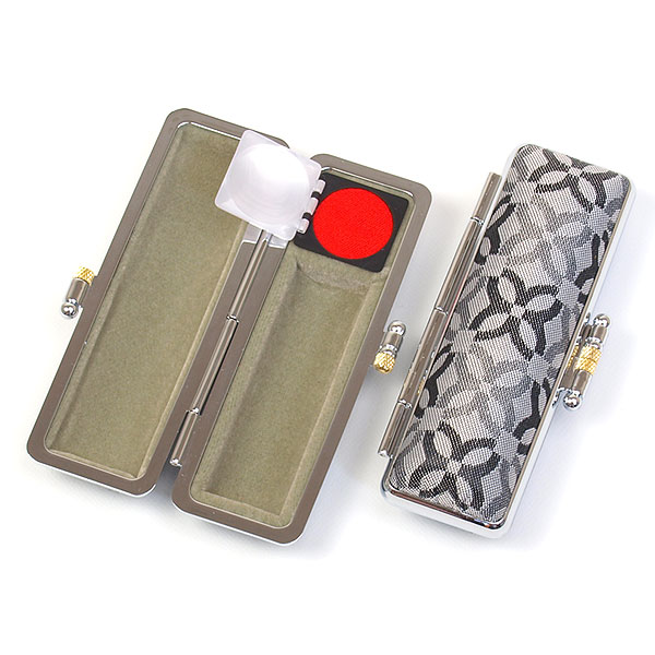 ご印鑑ケース[丸寸胴用]・モノグラム(クールグレイ)印鑑長さ約60mm・印面直径16.5mm〜18mm用・簡易朱肉付き