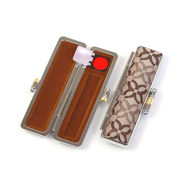 ご印鑑ケース[丸寸胴用]・モノグラム(ショコラ)印鑑長さ約60mm・印面直径10.5mm〜12mm用・簡易朱肉付き