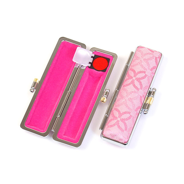 ご印鑑ケース[丸寸胴用]・モノグラム(パステルピンク)印鑑長さ約60mm・印面直径10.5mm〜12mm用・簡易朱肉付き