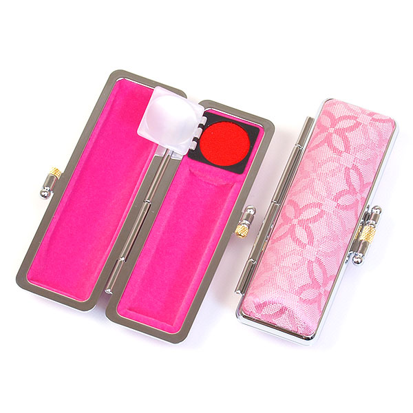 ご印鑑ケース[丸寸胴用]・モノグラム(パステルピンク)印鑑長さ約60mm・印面直径16.5mm〜18mm用・簡易朱肉付き