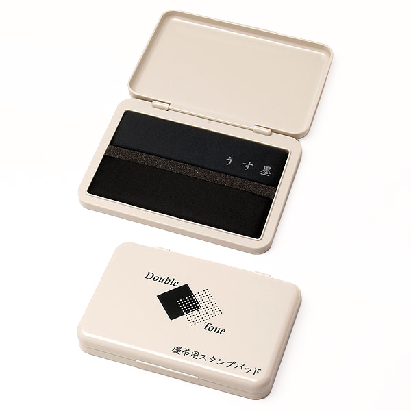 | 「薄墨」と「墨」がスタンプ台の上下に分かれています。 | 上下ともに慶弔印の捺印に十分な盤面サイズです。 |