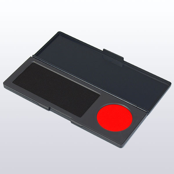 朱肉とスタンプ台が一緒になった便利な朱肉。シュスタミニはストッパー付きで持ち運びにも便利