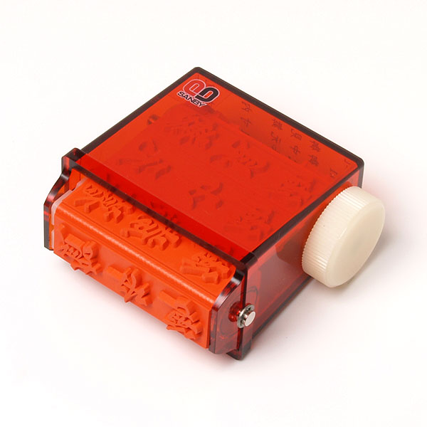 本体に付いているダイヤル1つで8パターンの印字を切り替え可能な大変便利な回転式のゴム印です。 |