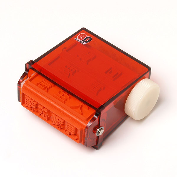 本体に付いているダイヤル1つで8パターンの印字を切り替え可能な大変便利な回転式のゴム印です。 |