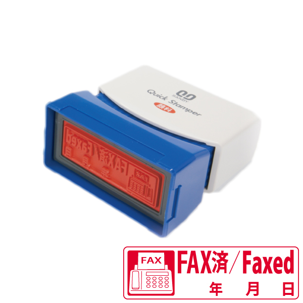サンビー・クイックスタンパー(既製品)イラスト・英文入り【FAX済】(横)印面サイズ:13x42mm・インク色:赤色[QMY-29]
