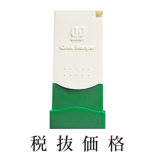 スタンプ台なしですぐに使える浸透印クイックスタンパーは、やさしく 紙面に落としてあげるだけで、鮮明な印影が得られる便利なスタンプです。 連続捺印も容易でインクの補充も可能なので繰り返し使えて経済的です。 消費税対応タイプは「税抜価格」など、消費税率の変更に伴う価格表示の 対応に最適なスタンプです。 |
