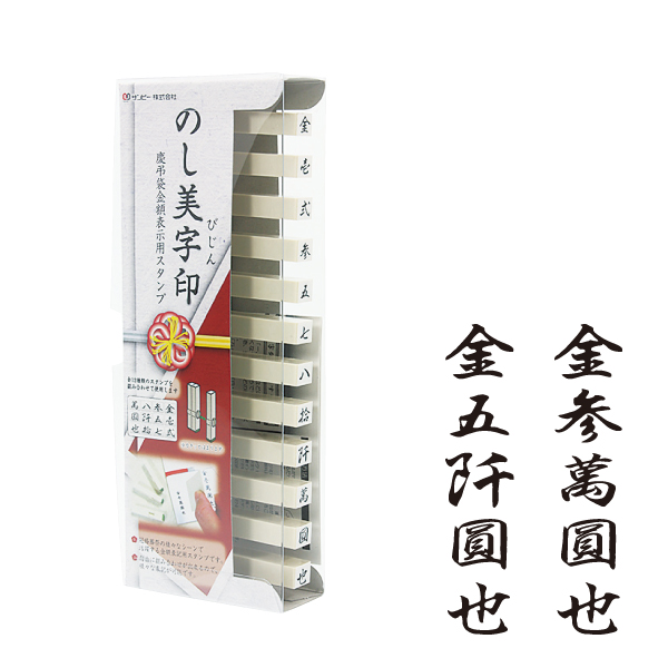 のし美字印(びじん)は筆書きが苦手な方でも綺麗に金額表示が可能な慶弔袋用金額表示スタンプです。