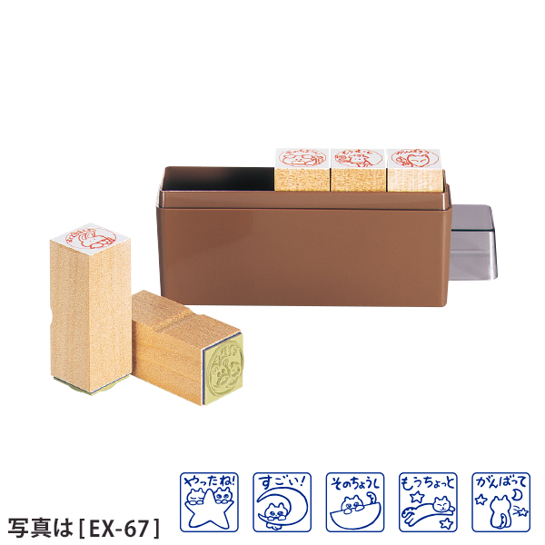 ふれあい評価印 EXシリーズ(ゴム印) ◆印面サイズ:22mm角 ◆ケースサイズ:W130×D33×H67mm(プラ) ※絵柄の変更、単品販売はお受け出来ません。 ※印影見本は実寸サイズではございません。 ※捺印には別途スタンプ台が必要となります。 |