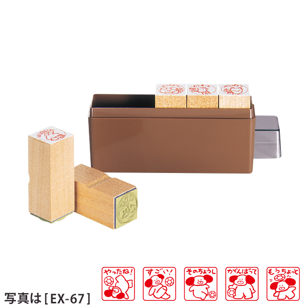 ふれあい評価印 EXシリーズ(ゴム印) ◆印面サイズ:22mm角 ◆ケースサイズ:W130×D33×H67mm(プラ) ※絵柄の変更、単品販売はお受け出来ません。 ※印影見本は実寸サイズではございません。 ※捺印には別途スタンプ台が必要となります。 |