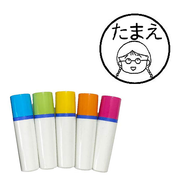 ちびまる子ちゃんネームスタンプ(たまちゃん)・エピリリ・ブラザーネーム印・文字:指定可能・インク色:5色より選択可・本体色:5色より選択可・印面直径10mm[epilyri brother]