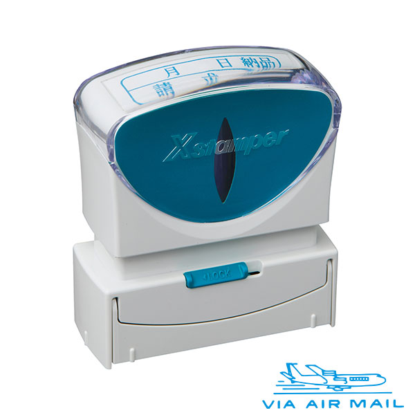 シャチハタ・Xスタンパー・ビジネス用キャップレスB型【VIA AIR MAIL】横・インク色:藍[X2-B-13433]/商品コード:72833